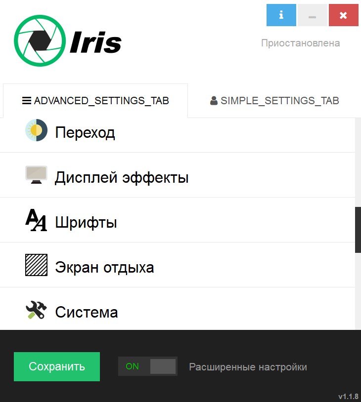 Iris 1.2.0 — программа, разработанная для снижения нагрузки на глаза при длительной работе за компьютером, доступна в удобных форматах: Repack и Portable. Утилита автоматически регулирует цветовую температуру и яркость экрана, уменьшая синее свечение, что особенно полезно в условиях слабого освещения. Она работает в фоновом режиме, не нагружая систему, и легко настраивается через иконку в трее. Благодаря интеллектуальному управлению графикой и поддержке различных режимов, Iris помогает сохранить зрение и улучшить качество сна.