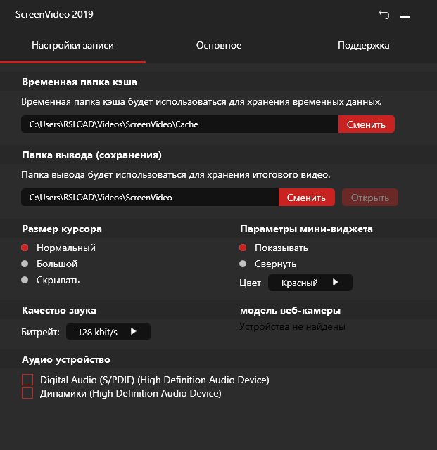 - Возможность захвата аудио с микрофона или системных потоков