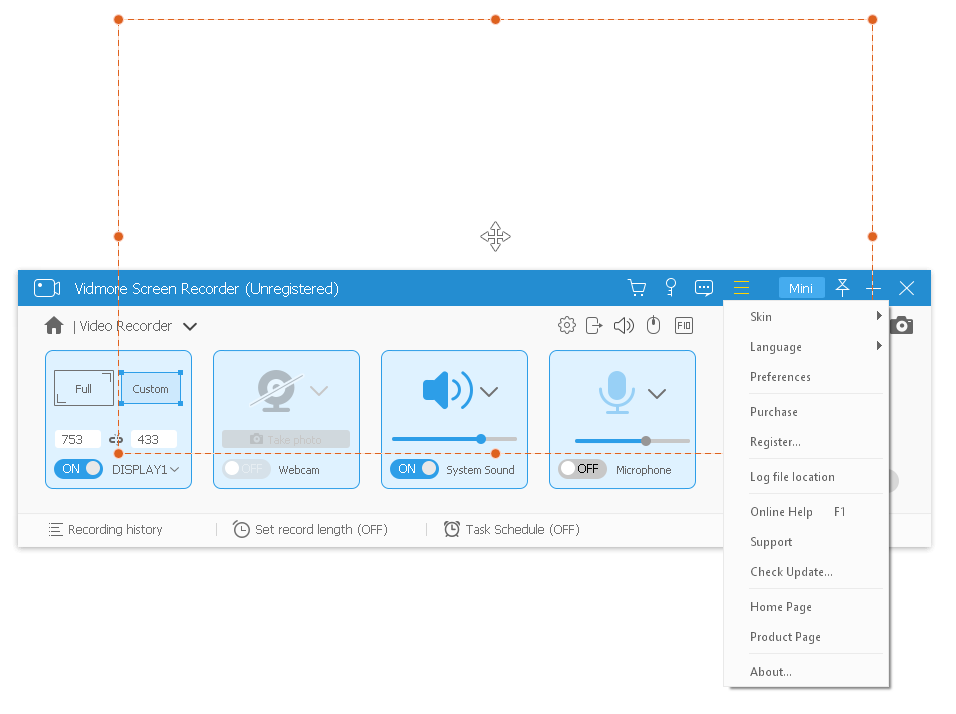 Работа с Vidmore Screen Recorder