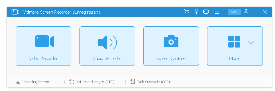 Vidmore Screen Recorder — это надежный и функциональный инструмент для захвата экрана, подходящий для записи вебинаров, лекций, игр, стримов, а также для создания обучающих материалов и демонстраций. Программа поддерживает запись как видео с экрана в высоком качестве, так и аудиопотоков: системного звука, микрофона или их комбинации. Особое внимание уделено удобству — основные функции доступны через крупные кнопки, что ускоряет запуск процесса записи без потери времени на настройки.
