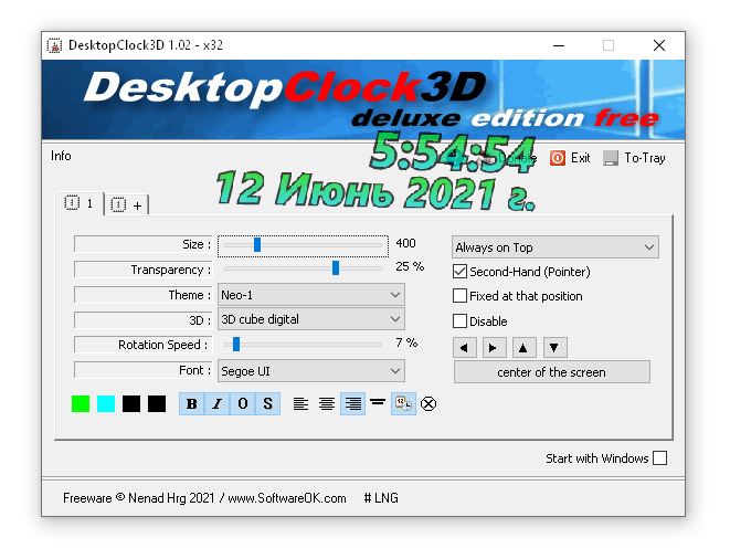 DesktopClock3D сочетает в себе минимализм, производительность и эстетическую привлекательность, не нагружая систему и работая стабильно на разных версиях Windows.