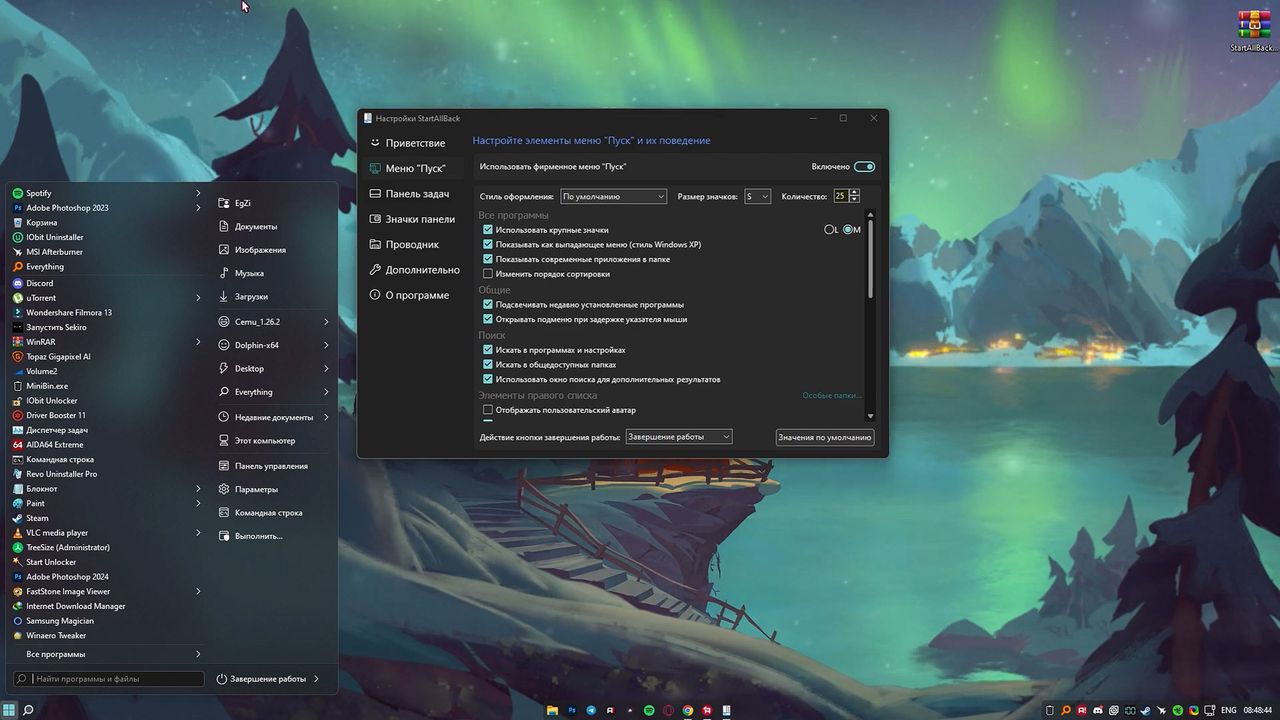 StartAllBack работает стабильно и не создаёт избыточной нагрузки на систему, обеспечивая плавную интеграцию с Windows 11.