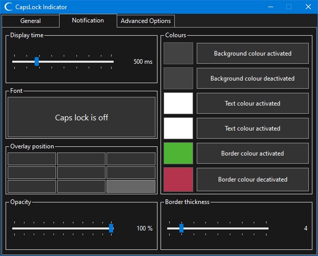 После запуска исполняемого файла приложение начинает работать в фоне и отслеживает состояние клавиш в реальном времени. При каждом нажатии на Caps Lock, Num Lock или Scroll Lock на экране появляется небольшое всплывающее окно с указанием текущего статуса. Цвет фона окна сразу сигнализирует пользователю: зелёный — клавиша активна, красный — неактивна. Настройки можно изменить в главном окне программы, где доступны параметры отображения, языка и уведомлений. Для применения новой конфигурации не требуется перезагрузка — все изменения вступают в силу сразу после сохранения. Пользователи, предпочитающие английский интерфейс, могут скачать соответствующий языковой пакет на официальном сайте разработчика.