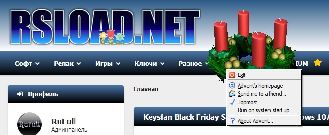 Рождественский венок — это настольное приложение, имитирующее традиционный христианский символ подготовки к Рождеству. На экране отображается венок, внутри которого размещаются четыре свечи. В зависимости от того, какой по счету Адвент наступил, программа зажигает нужное количество свечей: первую — в первое воскресенье перед Рождеством, вторую — во второе, и так далее. После 25 декабря свечи постепенно гаснут, возвращая рабочий стол в обычное состояние. Такой подход напоминает о религиозной и культурной символике этого времени года без необходимости использовать физические материалы.