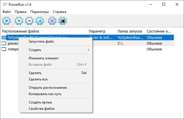 Использование PowerRun не требует глубоких знаний, однако рассчитано на тех, кто уже работает с системными компонентами. После запуска утилиты открывается основное окно, где отображаются доступные ярлыки. Пользователь может добавить собственный процесс, указав путь к исполняемому файлу, рабочий каталог и дополнительные параметры. Для удобства, поддерживается функция drag-and-drop: достаточно перетащить нужный файл в окно программы, чтобы запустить его с повышенными правами. Это особенно полезно при работе с повреждёнными системными утилитами или конфигурационными файлами, к которым стандартные учётные записи не имеют доступа. Кроме того, через PowerRun можно управлять доступом к реестру и запускать редактор с правами, превышающими административные.