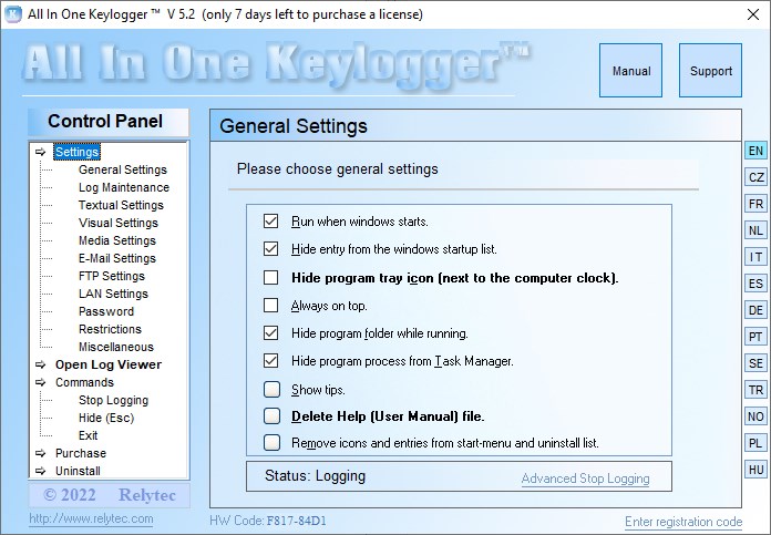 Работа с Relytec All In One Keylogger