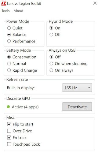Lenovo Legion Toolkit 2.25.3 — бесплатное приложение с открытым исходным кодом, предназначенное для тонкой настройки игровых ноутбуков серии Legion. Оно служит альтернативой официальному софту Lenovo Vantage, не потребляя системные ресурсы в фоне и не влияя на автономность устройства. Программа проста в использовании и позволяет гибко управлять параметрами производительности, энергопотребления и периферии.
