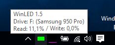 WinLED 1.5.3.3 разрабатывалась как альтернатива аппаратному индикатору активности диска, который часто отсутствует или закрыт при использовании ноутбука в док-станции. Утилита отображает виртуальный светодиод в области уведомлений Windows, мгновенно реагируя на операции чтения и записи. При активности индикатор меняет цвет — например, зелёный при чтении и красный при записи, что помогает легко дифференцировать тип нагрузки на диск.