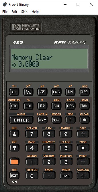 Запуск Free42 не требует установки — после распаковки архива пользователь может незамедлительно начать работу с одной из двух версий, находящихся в папке. Интерфейс полностью повторяет оригинальный HP-42S, включая клавиши, дисплей и систему меню, что минимизирует время адаптации для опытных пользователей. Все операции выполняются в режиме RPN, где пользователь вводит операнды, а затем применяет к ним действия. Программа поддерживает создание и редактирование пользовательских программ, хранение переменных, работу с комплексными числами, тригонометрические функции, логарифмы и статистические расчеты. Дополнительно реализована возможность копирования данных в буфер обмена и настройки внешнего вида интерфейса, включая размер шрифта и тему оформления.