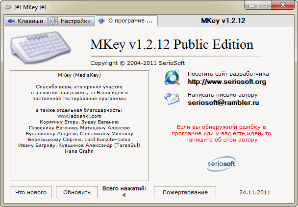 MKey разработана компанией SerioSoft как бесплатная утилита для детальной настройки клавиш на клавиатурах, особенно ориентирована на устройства с мультимедийными функциями. Программа позволяет настроить поведение специальных кнопок, таких как управление воспроизведением, громкостью, открытие приложений и другие действия. При установке рекомендуется удалить сторонние драйверы, чтобы избежать конфликтов в системе, особенно при работе с проводной или беспроводной клавиатурой.