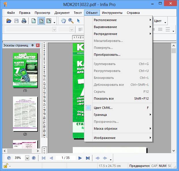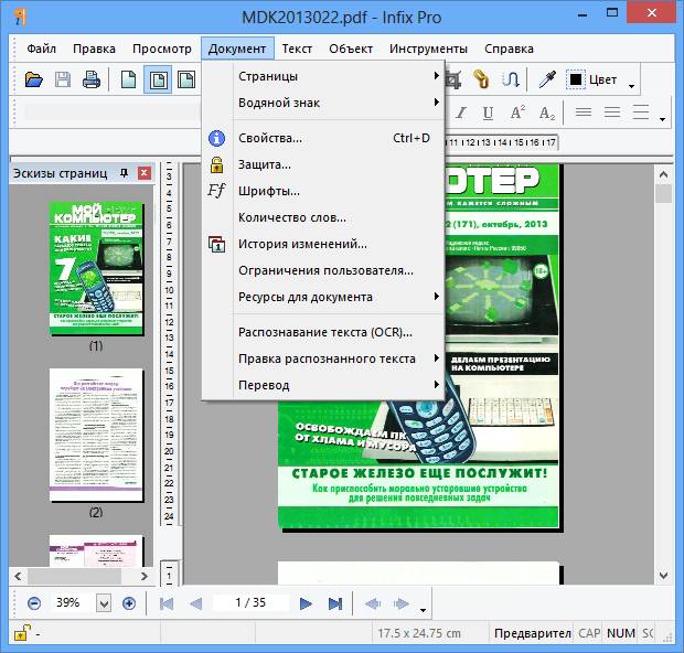 Программа обеспечивает точное редактирование текста прямо внутри документа, включая изменение абзацев, колонок и межстрочного интервала.
