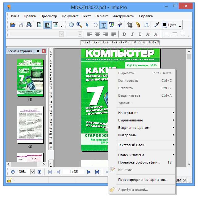 Использование InfixPro PDF Editor интуитивно понятно благодаря привычному интерфейсу, схожему с офисными приложениями. Документ можно загрузить, просто перетащив его в основное окно программы, после чего откроется панель с инструментами для редактирования. В верхней части интерфейса расположены вкладки: текст, изображения, страницы, аннотации и настройки безопасности. Функция поиска и замены позволяет быстро обновлять информацию во всём документе, например, заменить контактные данные в колонтитулах или обновить нумерацию. Поддерживаются операции копирования, вставки и переноса фрагментов между PDF-файлами, что упрощает создание новых документов на основе существующих.