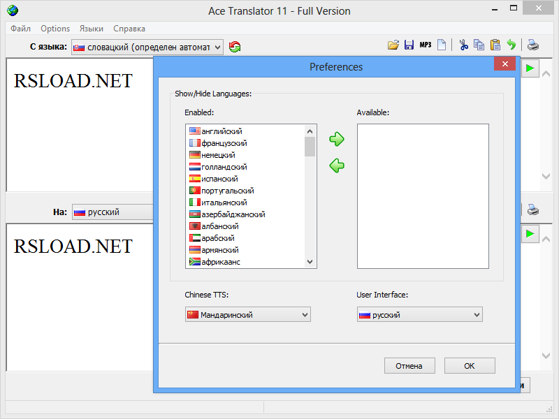 Работа с Ace Translator