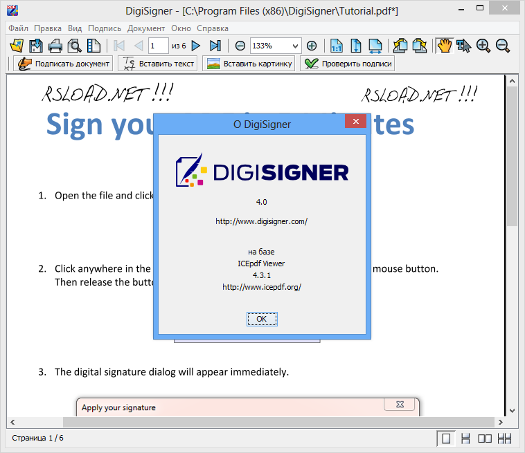 DigiSigner 4.0 — это компактное и эффективное приложение для создания и управления цифровыми подписями в PDF-документах. Программа поддерживает работу с сертификатами, позволяет настраивать внешний вид подписи и размещать её в любом месте документа. Решение совместимо с Adobe Reader, что гарантирует корректное отображение подписанных файлов на различных устройствах.