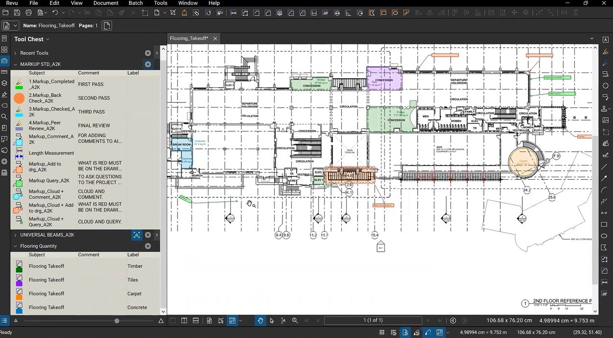Bluebeam Revu Extreme представляет собой профессиональное решение для обработки PDF-документов, ориентированное на специалистов в области строительства, проектирования и технической документации. Программа обеспечивает высокоточное отображение чертежей, полученных из CAD-систем, и корректно обрабатывает сложные векторные объекты. Пользователи могут добавлять аннотации, комментарии, выноски и метки, а также использовать инструменты измерения расстояний и площадей прямо в документе. Интерфейс приложения интуитивно понятен и напоминает привычные офисные программы, что упрощает освоение.