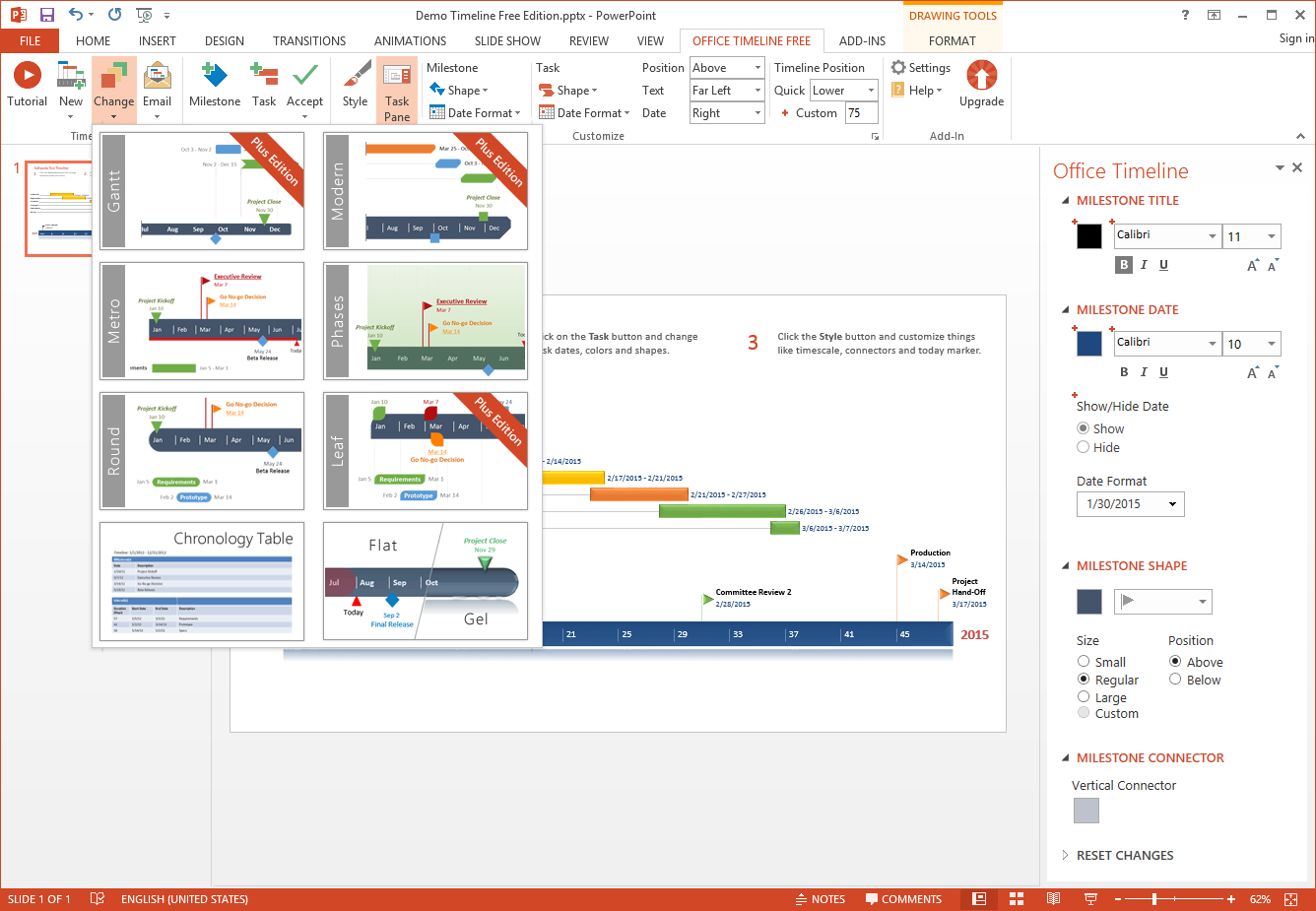 Использование Office Timeline значительно ускоряет процесс подготовки презентаций, особенно в бизнес-среде, где требуется регулярно отчитываться по ходу выполнения задач. Программа экономит время, исключая ручной труд при создании графиков, и при этом обеспечивает высокое качество визуализации. Однако у продукта есть и особенности, которые стоит учитывать при выборе инструмента. Несмотря на широкие возможности, интерфейс остаётся привязанным к английской локализации, что может вызвать трудности у пользователей без достаточного уровня языковой подготовки.