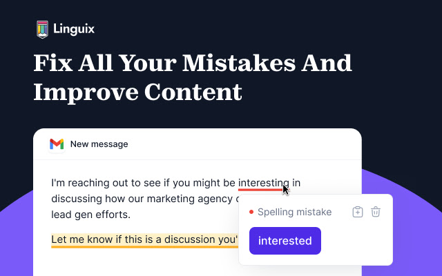 Linguix Grammar Checker and Text Rewriter 1.6.137 — это современный инструмент, разработанный для автоматической проверки текста на грамматические, пунктуационные и орфографические неточности. Расширение интегрируется в браузер и функционирует практически на всех сайтах, где ведется набор текста: от электронной почты до облачных редакторов и социальных сетей. Основной упор сделан на качество письменной речи, а также на улучшение стилистики с помощью AI-технологий. Программа особенно полезна для тех, кто не является носителем английского, но стремится писать грамотно и естественно.