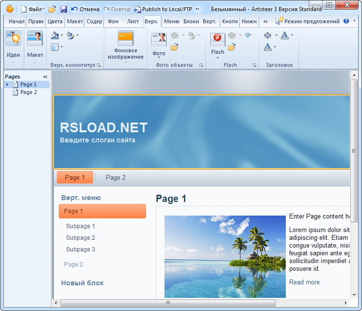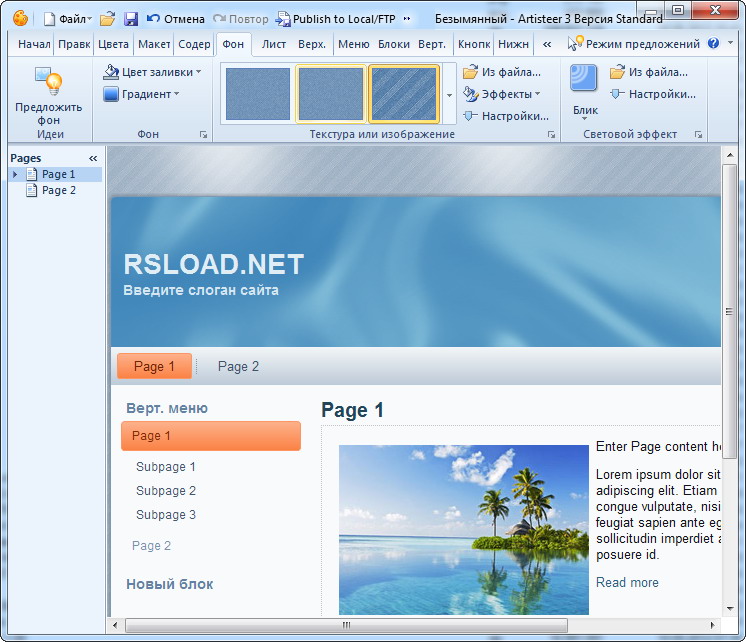 Работа с Artisteer
