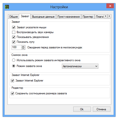 - После съёмки скриншота программа может автоматически сохранять изображение, отправлять в буфер обмена или открывать в редакторе.