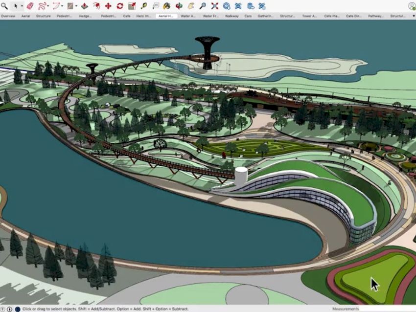 - Наличие встроенного приложения LayOut позволяет создавать чертежи, схемы и отчёты на основе 3D-моделей.