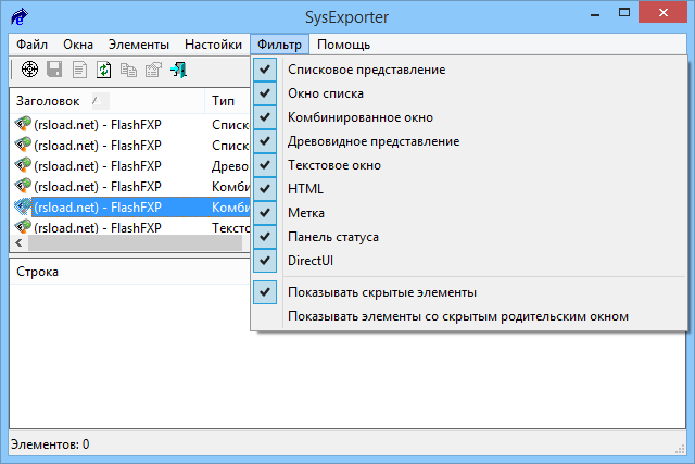 Для начала работы с SysExporter достаточно запустить исполняемый файл и перетащить значок программы на окно интересующего приложения. Утилита автоматически анализирует содержимое окна, определяет элементы списка или дерева и предоставляет пользователю возможность выбрать нужные данные. После выбора можно экспортировать информацию в один из поддерживаемых форматов — TXT, HTML или XML. Это удобно при необходимости дальнейшего анализа или создания отчётов. Программа корректно обрабатывает имена файлов, пути, электронные адреса, ключи реестра и другие типы данных, отображаемые в списках.