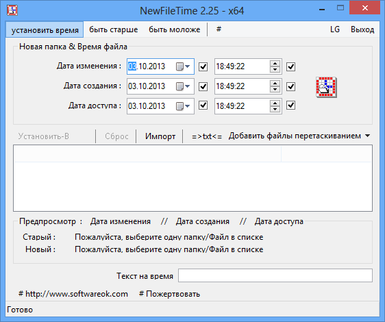Утилита NewFileTime разработана для точного редактирования даты создания, модификации и последнего доступа к файлам и каталогам. Несмотря на небольшой размер — всего 512 КБ — программа обладает всем необходимым функционалом для изменения временных атрибутов файловой системы. Она особенно полезна при подготовке архивов, восстановлении резервных копий или приведении файлов в соответствие с определёнными временными рамками.