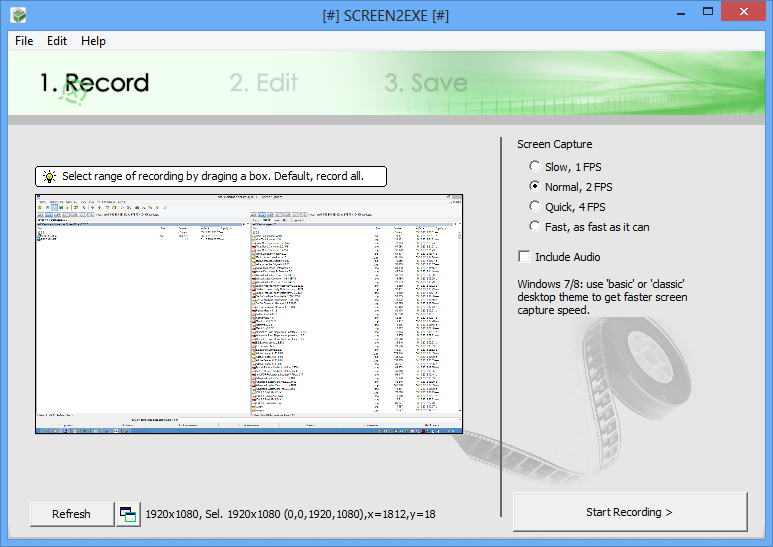 Работа с Screen2Exe