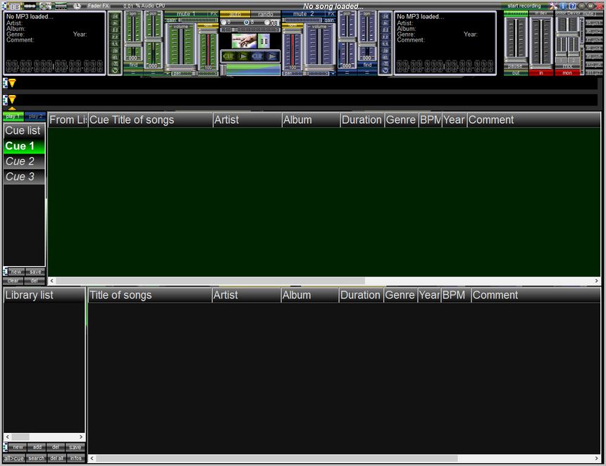Интерфейс MiXimum 6.130510 выглядит насыщенно и содержит множество панелей, что может быть вызовом для новичков. Однако пользователям, имеющим опыт работы с аудиомиксерами, адаптация не составит труда. Основной рабочий процесс строится вокруг двух дорожек с независимыми эквалайзерами и фейдером громкости, позволяя плавно переключаться между треками. Дополнительно доступен инструмент поиска темпа, помогающий подбирать композиции с близким BPM для более гармоничного микса. Сохранение пресетов позволяет быстро применять любимые настройки к новым проектам. Поддержка циклов упрощает создание повторяющихся фрагментов в диджейских сетах.