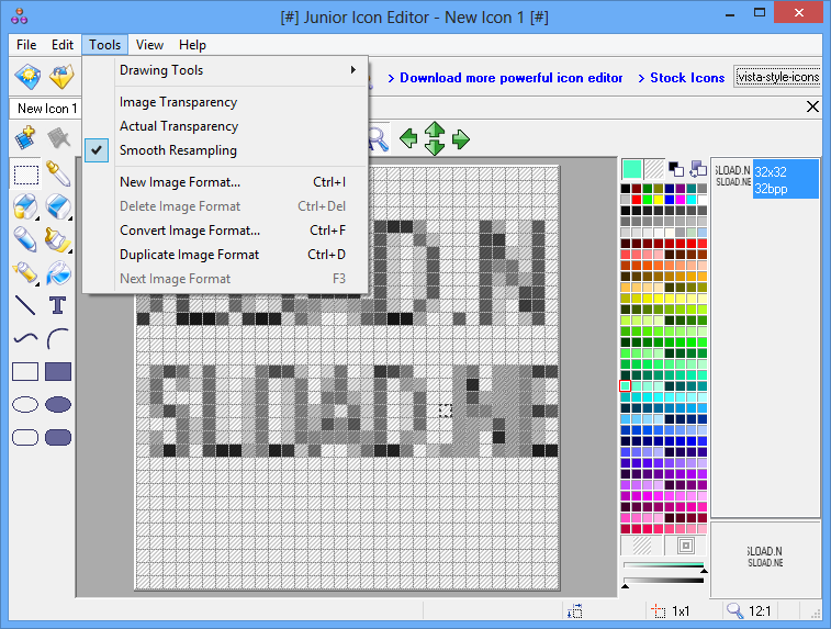 Junior Icon Editor 4.39 — это компактное и функциональное приложение для создания и редактирования иконок, поддерживает форматы ICO, XPM и другие. Программа подходит как для начинающих, так и для опытных пользователей, стремящихся изменить внешний вид ярлыков или разработать собственные значки для приложений. Благодаря простому интерфейсу и наличию необходимых инструментов, работа с изображениями становится удобной и интуитивно понятной.