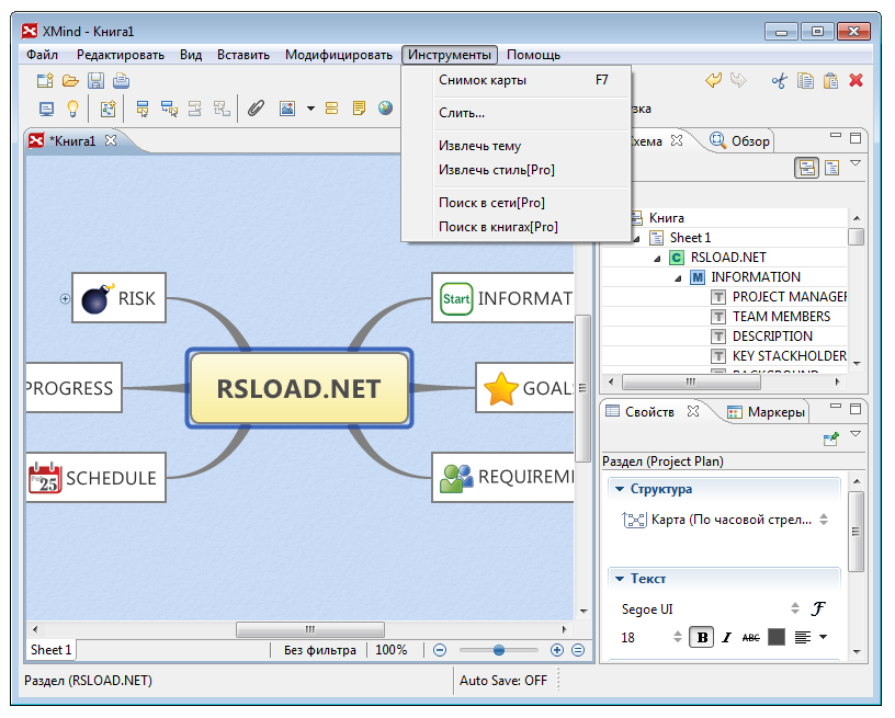 Работа с XMind