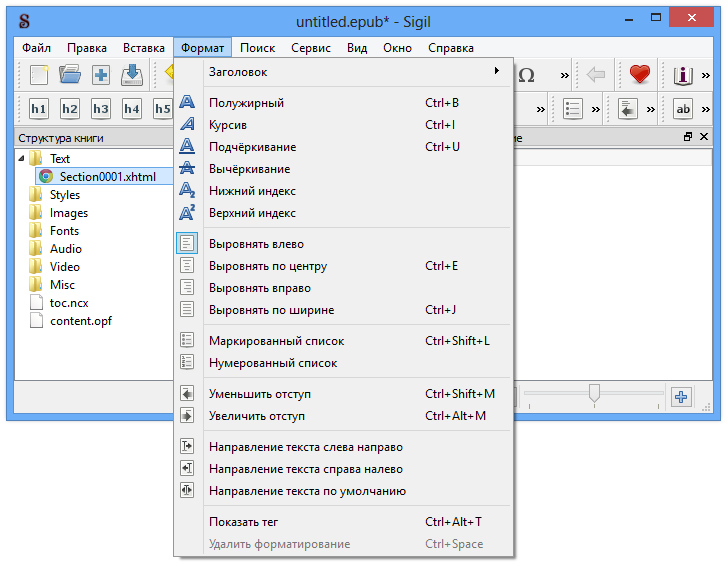 Работа с Sigil