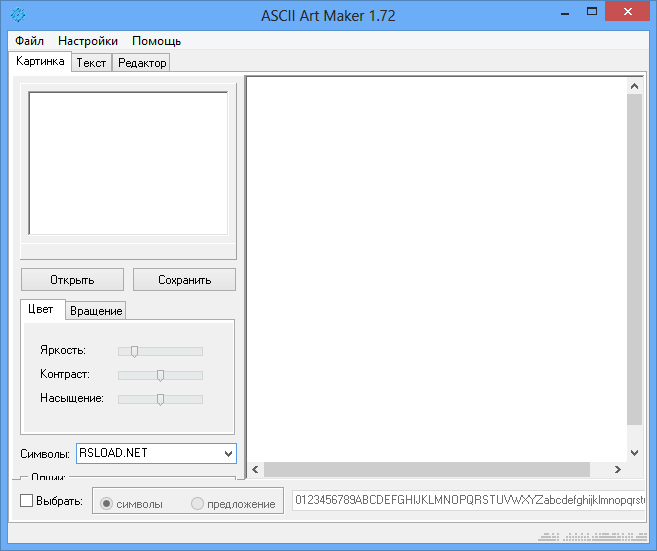 - С помощью встроенного редактора можно вручную формировать текстовое изображение, что даёт полный контроль над созданием ascii-графики.