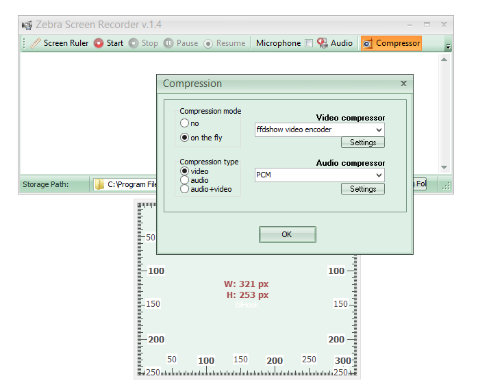- Выбор области экрана для записи с помощью Screen Ruler