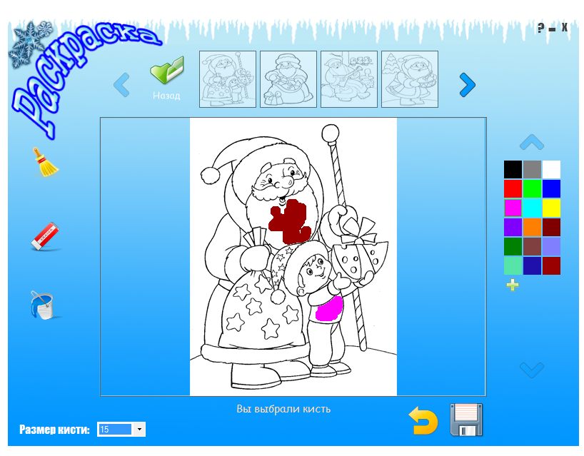 Новогодняя раскраска v1.0 — простая и уютная программа для детей и взрослых, созданная в праздничной новогодней тематике. С её помощью можно раскрашивать зимние картинки, наслаждаясь атмосферой предпраздничного настроения. Программу можно бесплатно скачать и использовать на компьютере под управлением Windows.