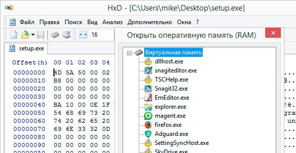 - Функция редактирования оперативной памяти RAM, полезная при отладке программ