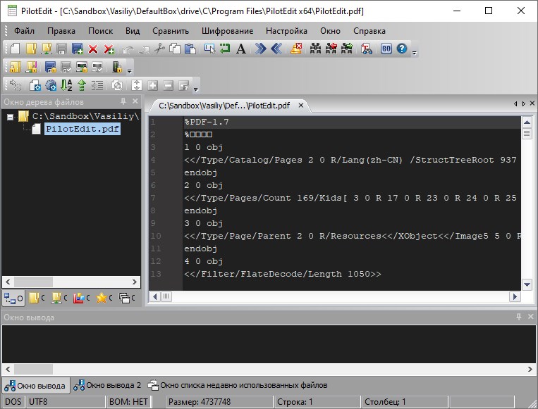 PilotEdit Pro 20.4.0 предлагает расширенные возможности для редактирования текстовых данных с акцентом на скорость и удобство. Программа отлично справляется с большими файлами, превышающими несколько гигабайт, не зависая и не потребляя чрезмерные ресурсы системы. Это делает её незаменимой для разработчиков, системных администраторов и всех, кто работает с объёмными текстовыми данными. Поддержка различных кодировок, таких как ANSI, UTF-8 и UTF-16, позволяет корректно отображать и редактировать тексты на разных языках без искажений. Благодаря встроенному механизму автоматического определения кодировки, пользователю не нужно вручную выбирать формат при открытии файла.