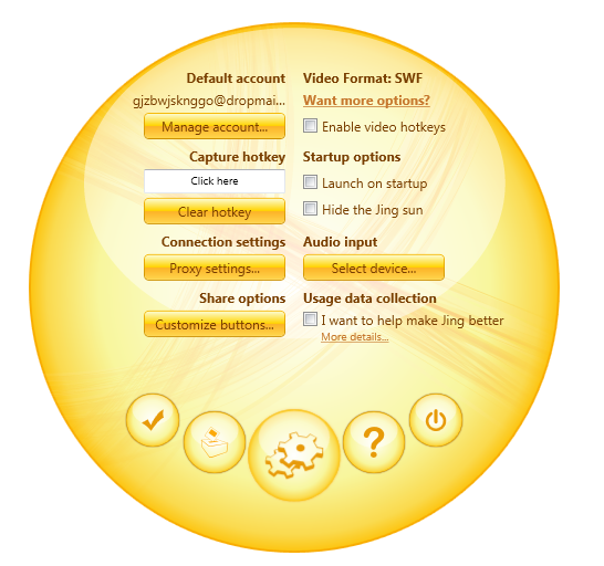 TechSmith Jing — это бесплатное программное обеспечение, разработанное компанией TechSmith Corporation для оперативного захвата изображения с экрана и записи коротких видеороликов. Программа поддерживает работу на различных версиях операционной системы Windows и имеет минимальные системные требования, что делает её доступной для большинства пользователей. После установки в правом верхнем углу экрана появляется интерфейс в виде «солнышка», через который осуществляется управление всеми функциями приложения. Этот элемент можно переместить к любой границе экрана, чтобы не мешал при работе.