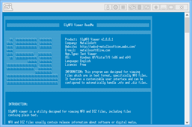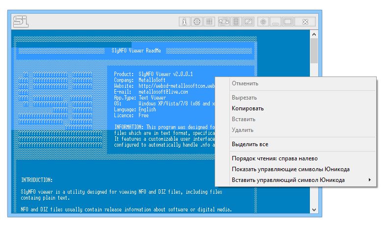 Программное обеспечение SlyNFO Viewer разработано специально для корректного открытия и чтения специфических текстовых файлов, которые часто сопровождают программные пакеты. Файлы с расширением NFO и DIZ традиционно используют кодировку ASCII и содержат визуальные элементы, такие как рамки, логотипы и стилизованный текст, которые стандартные редакторы отображают некорректно. Данная утилита корректно интерпретирует такие данные, обеспечивая чёткое и приятное восприятие информации. Программа совместима с различными версиями Windows и не требует установки .NET Framework или других дополнительных компонентов.