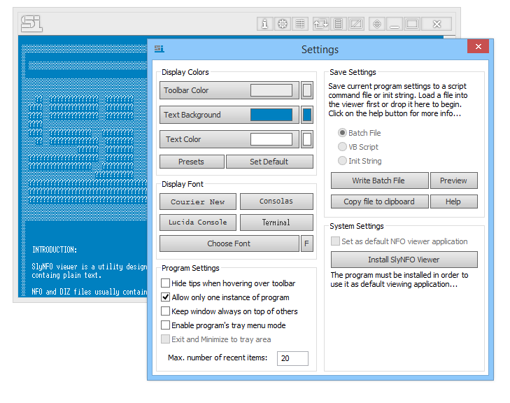 SlyNFO Viewer 2.0.0.2 — это компактное портативное приложение для просмотра NFO и DIZ файлов, содержащих текстовую информацию и ASCII-графику. Программа поддерживает настройку отображения, включая размер шрифта, цвет фона и текста, а также позволяет очищать содержимое от лишних символов. Благодаря малому размеру и отсутствию необходимости в установке, она удобна для повседневного использования.