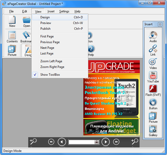 - Поддерживает вставку аудио, видео, изображений, кнопок и Flash-анимации в страницы книги
