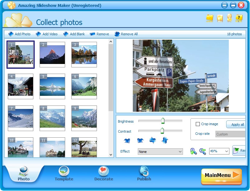 Amazing Slideshow Maker 4.8.0 — это удобное приложение для создания слайд-шоу из фото и видео с возможностью добавления музыки, текстовых надписей и визуальных эффектов. Программа подходит как для домашнего использования, так и для подготовки презентаций или цифровых открыток. Поддержка экспорта в формате SWF и интеграция с Facebook позволяют быстро делиться результатами.