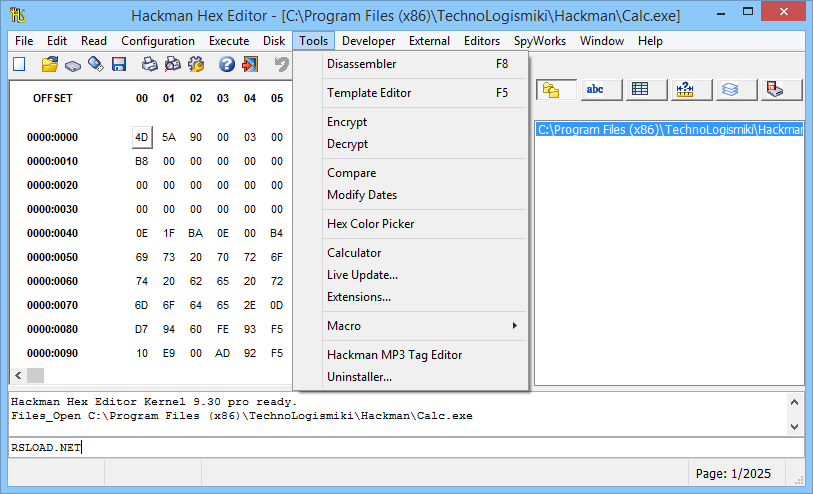 - Hackman Hex Editor — основной инструмент для просмотра и изменения содержимого файлов и памяти в шестнадцатеричном формате.