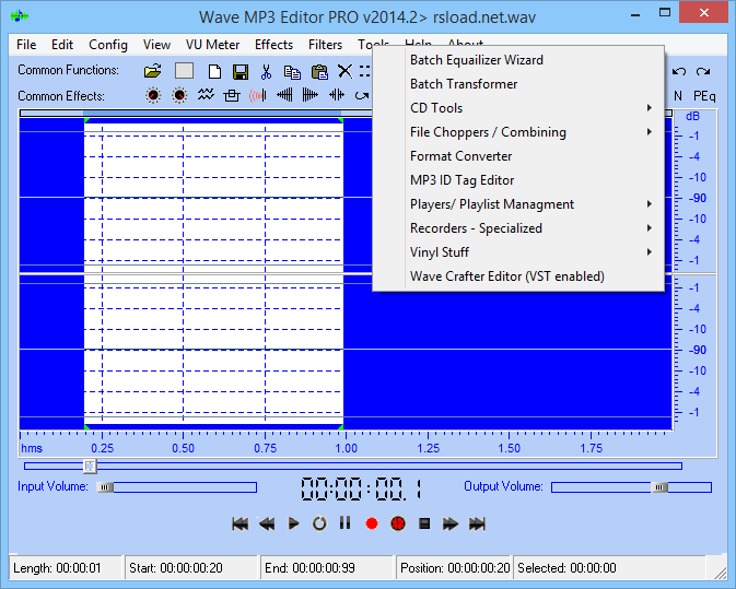 Программа предлагает инструменты, необходимые для базового и среднего уровня аудиоредактирования, включая наложение эффектов и захват звука в реальном времени.