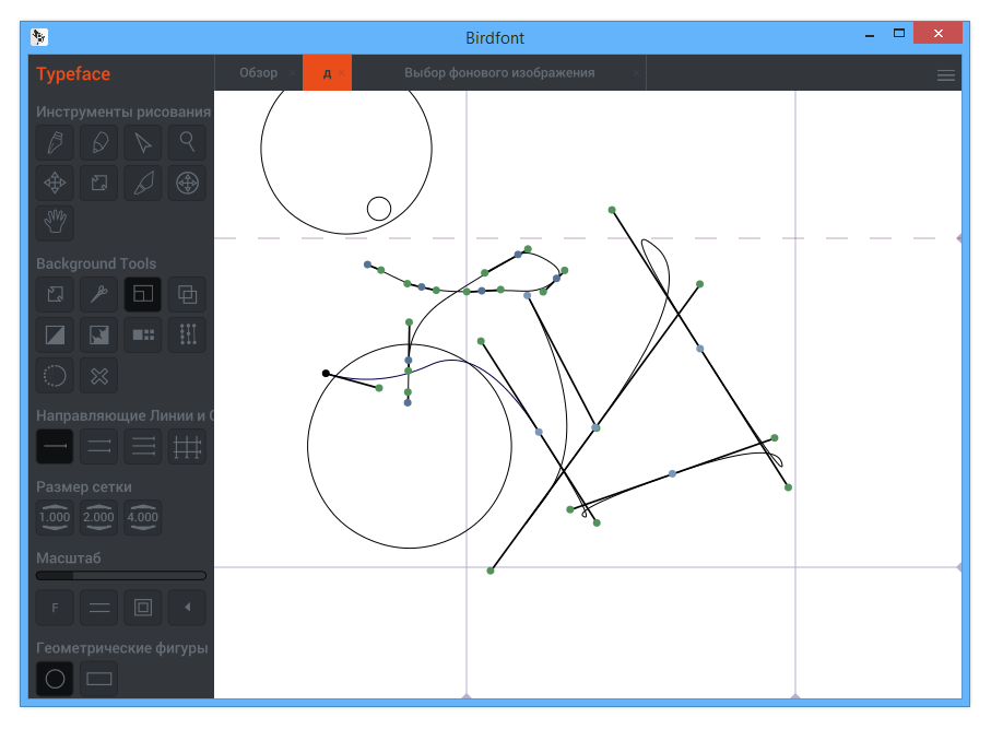 Интерфейс BirdFont организован логично: каждая вкладка отвечает за отдельный символ или шрифт, что позволяет быстро переключаться между элементами проекта. Работа начинается с выбора базового шаблона или создания нового символа с чистого листа. Используя встроенные инструменты рисования, можно строить контуры, настраивать кривые Безье, задавать параметры толщины линий и управлять узлами. После завершения дизайна символа он автоматически интегрируется в шрифтовую таблицу. Поддержка импорта изображений в качестве фона помогает точно воссоздавать желаемый стиль, например, по образцу рукописного текста. Экспорт завершает процесс — шрифт можно сохранить в нужном формате и использовать в других приложениях.
