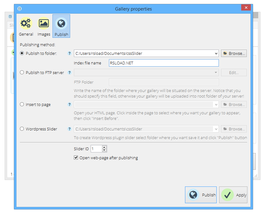 Пользоваться cssSlider очень просто: после запуска приложения нужно добавить изображения или текстовые блоки, выбрать подходящий шаблон и настроить эффекты смены кадров. Программа позволяет регулировать размер слайдера, изменять шрифты, настраивать интервал между переключениями, а также задавать параметры поведения на мобильных устройствах. После завершения настройки генерируется готовый HTML и CSS-код, который можно вставить на сайт или загрузить через FTP напрямую. Приложение поддерживает работу с несколькими слайдерами в рамках одного проекта, что удобно при разработке сложных макетов.