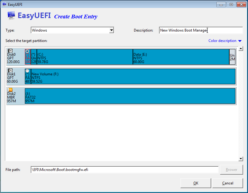 - Возможность редактирования, удаления и создания новых записей загрузки EFI/UEFI