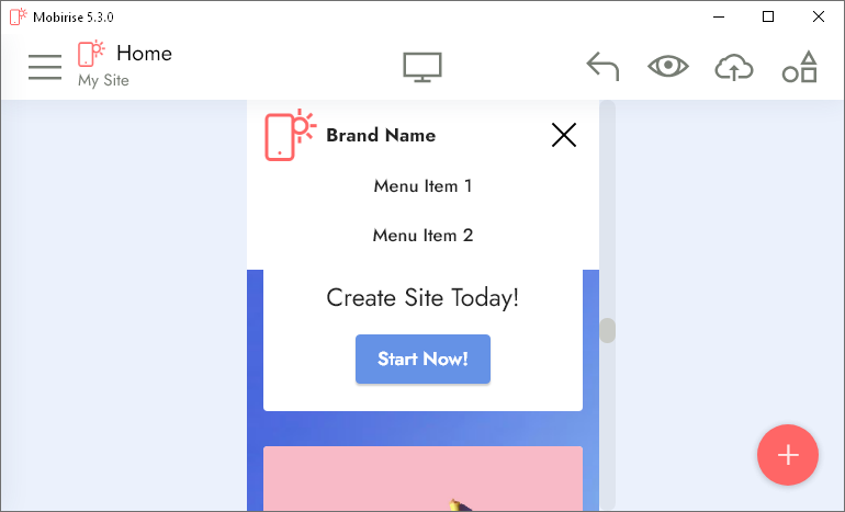 Принцип работы с Mobirise основан на добавлении визуальных блоков и их настройке через боковую панель. С помощью кнопки «плюс» справа можно вставить нужный элемент: например, заголовок, галерею или форму. Каждый блок настраивается индивидуально — можно менять шрифты, цвета, отступы и анимацию. Встроенная предварительная вёрстка показывает, как сайт будет выглядеть в браузере на компьютере, планшете и смартфоне. После завершения редактирования проект можно экспортировать и загрузить на сервер через FTP. Программа не требует постоянного интернет-соединения, что удобно для оффлайн-работы.