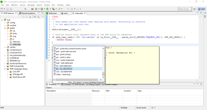 Работа с Zend Studio