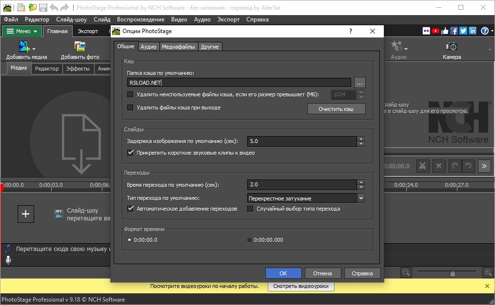 Интерфейс NCH PhotoStage Professional 12.15 прост и логичен. После открытия программы пользователь может импортировать нужные фотографии и видеофайлы, расставив их в нужной последовательности на временной шкале. Далее доступно применение эффектов, таких как плавное появление, затухание, масштабирование и движение. Переходы между слайдами можно настроить вручную, выбрав один из множества вариантов. Добавление музыки осуществляется через аудиотрек, который можно обрезать, наложить на весь проект или привязать к отдельным моментам. Финальный проект можно экспортировать в популярные форматы, включая MP4, AVI, WMV и другие, а также записать на DVD или сохранить на флешку или внешний диск. Также поддерживается запись видео в формате для YouTube, что удобно для публикации в интернете.