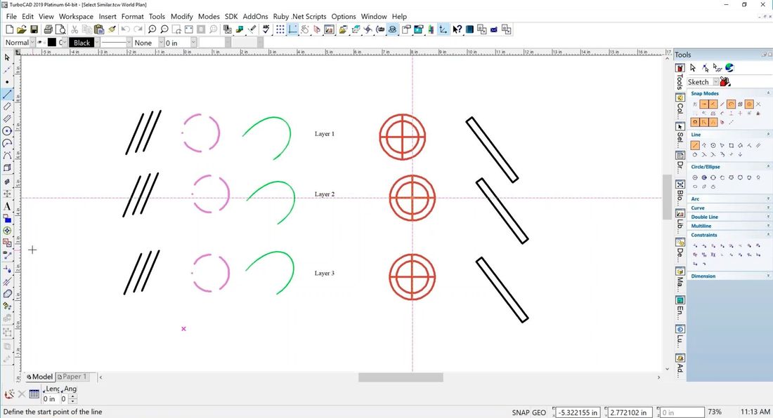 При первом запуске TurboCAD предоставляет на выбор несколько рабочих пространств: классическое 2D-чертежное, 3D-моделирование и гибридный режим. Каждое из них адаптировано под конкретные задачи и может быть дополнительно настроено. Инструментарий позволяет строить объекты с высокой точностью благодаря привязкам, сеткам и размерным контроллерам. Архитекторы могут быстро генерировать стены, размещать оконные и дверные проемы, а затем автоматически формировать разрезы и фасады. Для визуализации используются встроенные движки с возможностью настройки материалов, текстур, освещения и теней, включая фотореалистичные эффекты.
